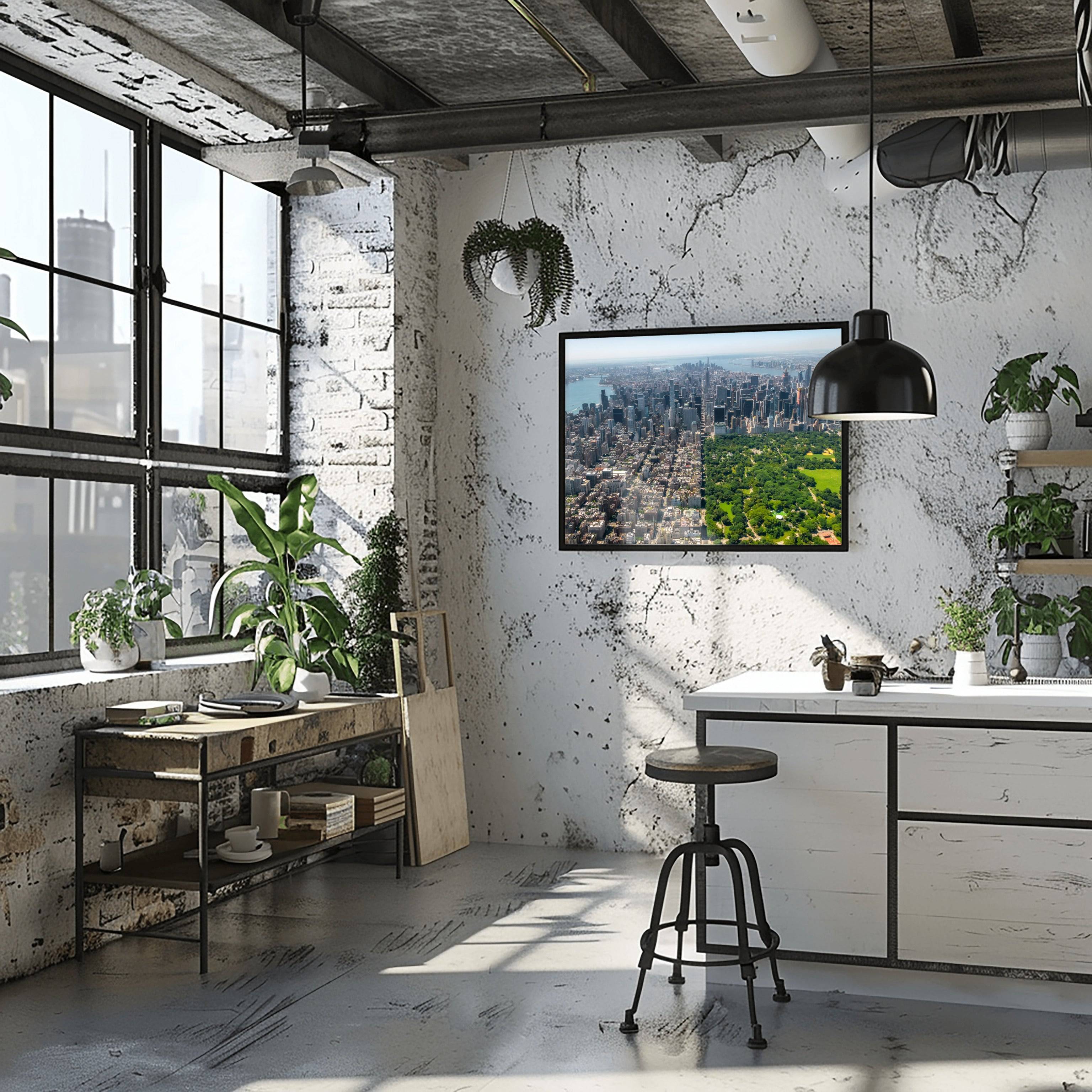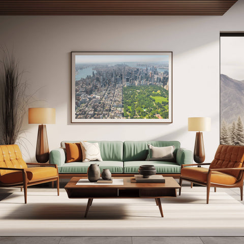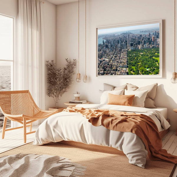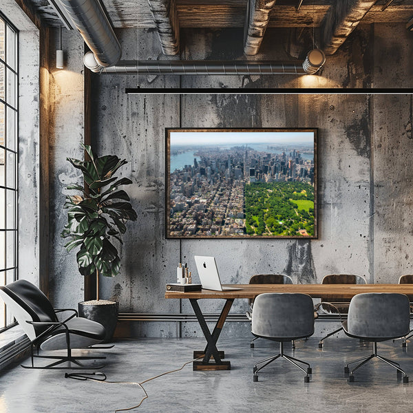 Richard Silver’s high-altitude perspective offers a rare look at the geometry of Manhattan. This print is a powerful, high-impact piece for an urban loft or a corporate office, celebrating the architectural ambition and the "green lungs" of the world’s most iconic city.