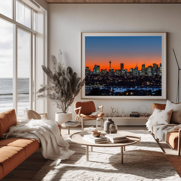 Gaze across the sparkling waters of the Tasman Sea to the world’s most famous harbour with this vibrant fine art photograph of the Sydney Skyline. This piece captures the majestic "Emerald City" at the height of its visual glory, where the ivory sails of the Sydney Opera House meet the massive steel arch of the Sydney Harbour Bridge. The composition highlights the high-density brilliance of the Central Business District (CBD) as it reflects into the deep blue of the harbor, offering a panoramic celebration of Australian urban life.