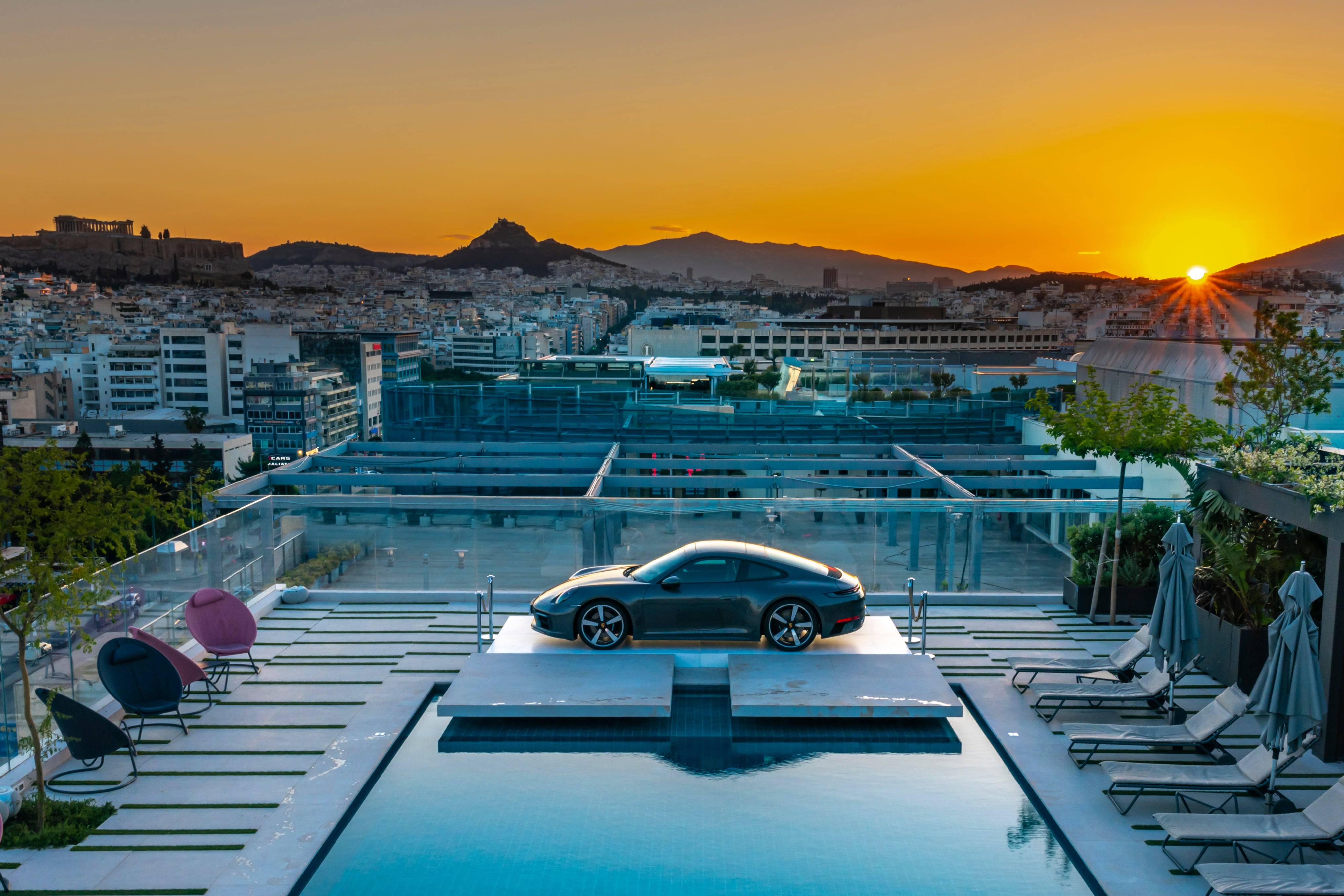 There is no better place to witness the transition of Athens from an ancient ruin to a modern metropolis than from a high-altitude rooftop. This photograph, taken from the Grand Hyatt, captures the "Golden Hour" as the sun sets over the Saronic Gulf, casting a warm glow over the sprawling white buildings of the city while the Acropolis begins to illuminate on its distant perch.