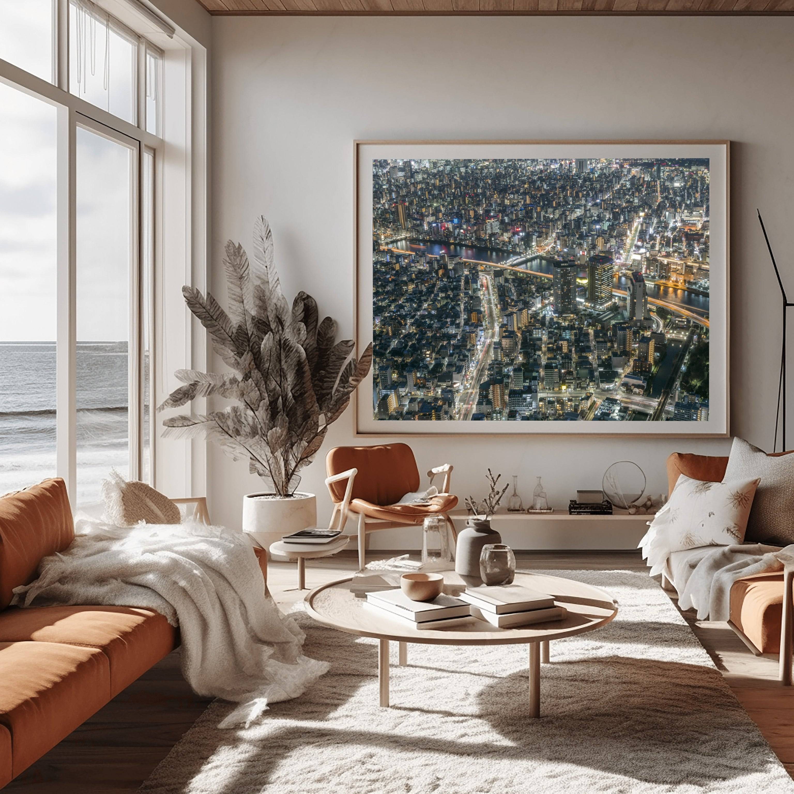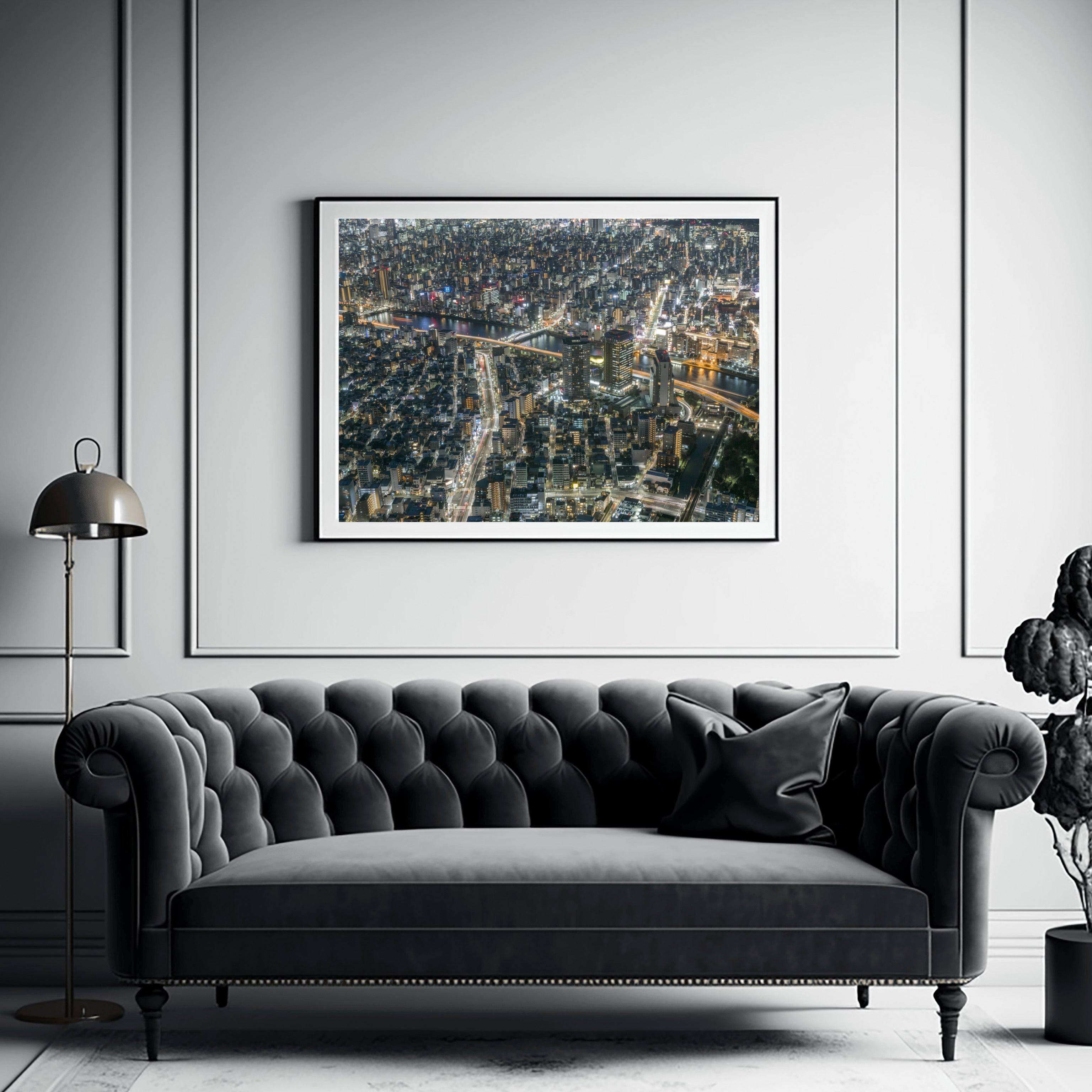 Immerse yourself in the electric pulse of the world’s most populous metropolis with this stunning fine art photograph of the Tokyo, Japan Skyline at Night. This piece captures the infinite sea of neon lights and glowing skyscrapers that define Tokyo’s futuristic urban landscape. From the iconic red silhouette of the Tokyo Tower to the shimmering glass giants of Minato and Shinjuku, the image reveals a city that never sleeps, vibrating with a high-octane energy that is both chaotic and perfectly ordered.