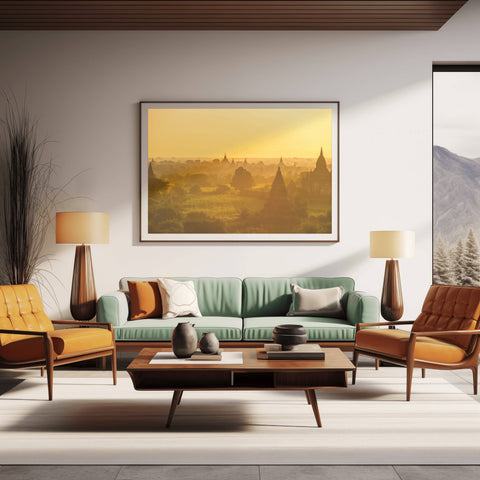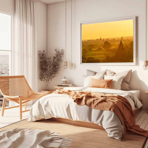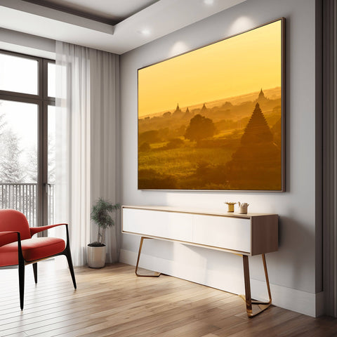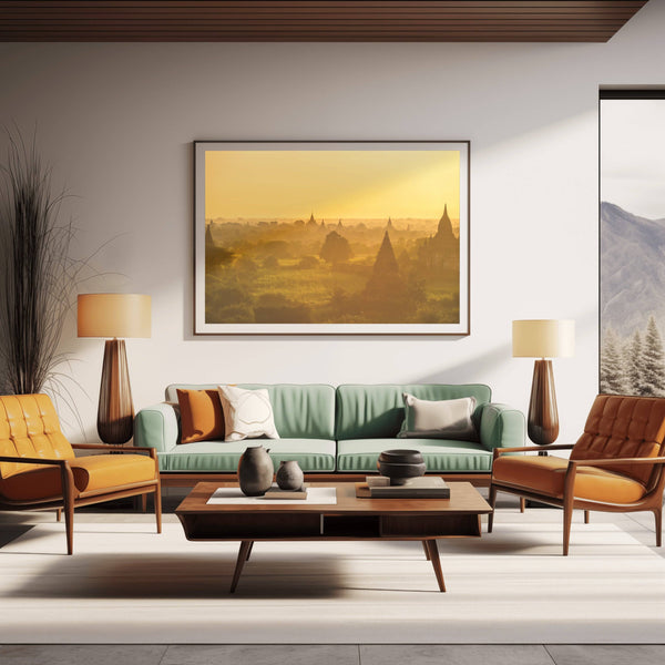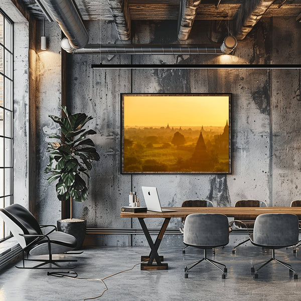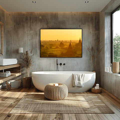 Richard Silver’s lens captures the ethereal, painterly quality of a Burmese morning, where the light transitions from deep indigo to a fiery gold. This print is a perfect centerpiece for a bedroom or meditation space, offering a sense of peace, timelessness, and the quiet thrill of discovery.