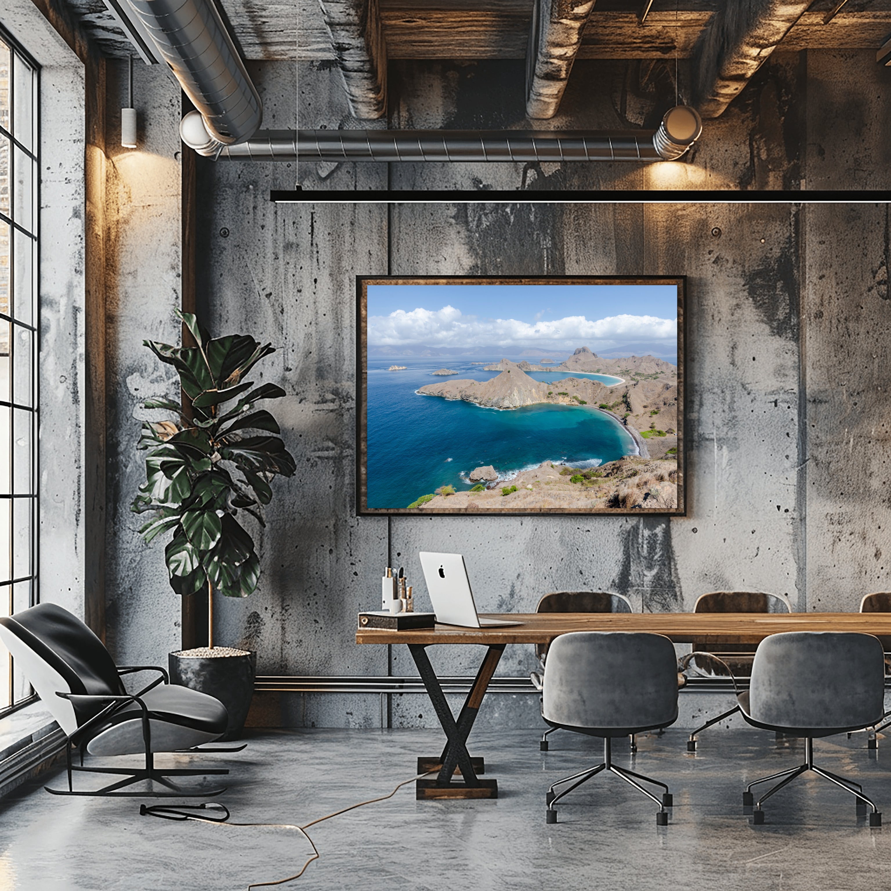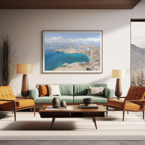 Richard Silver’s lens highlights the incredible contrast between the scorched, golden grass of the dry season and the vibrant, deep blues of the surrounding Indian Ocean. This print is a powerful statement of nature’s raw geometry, making it a perfect addition to a modern coastal home or an office looking for a bold, adventurous focal point.