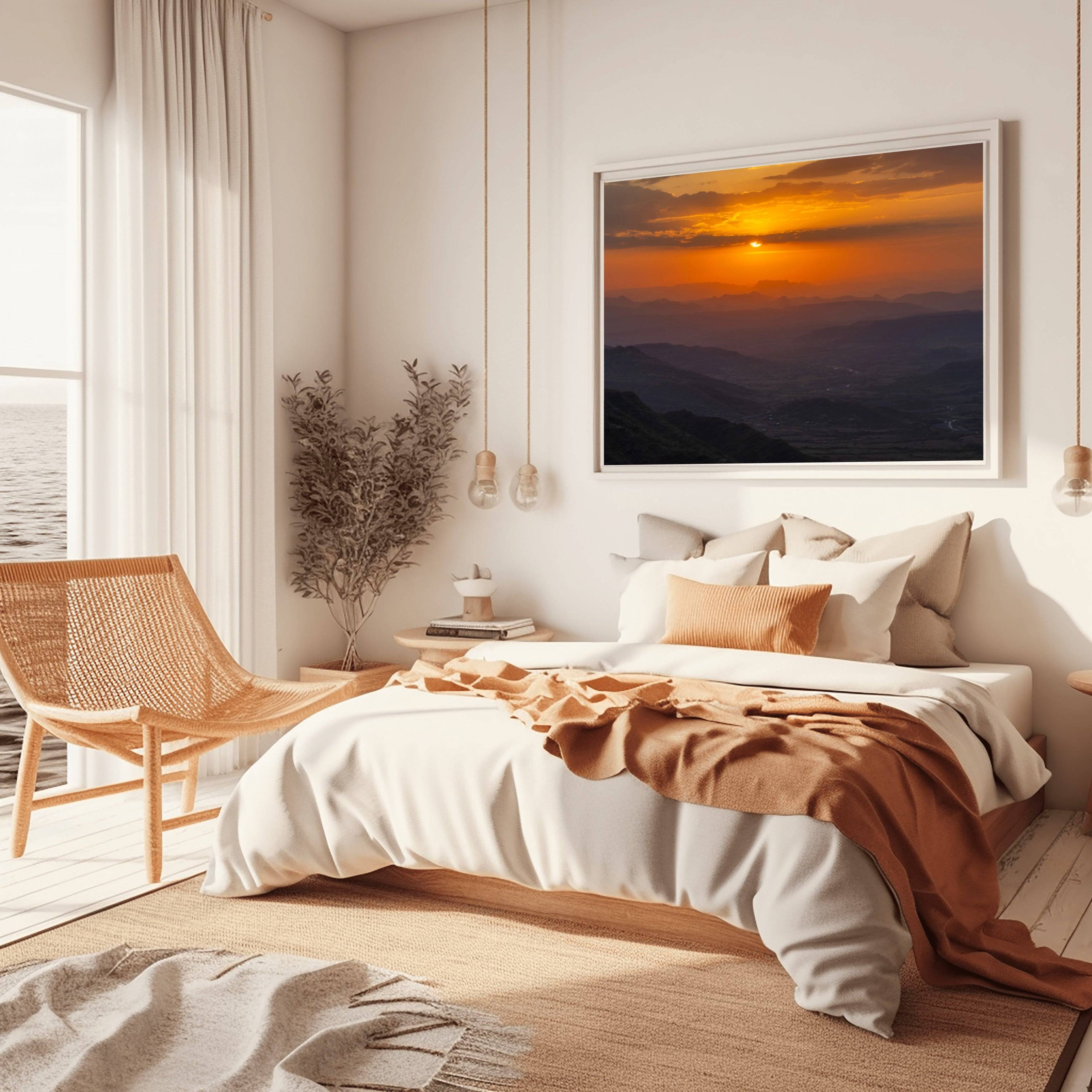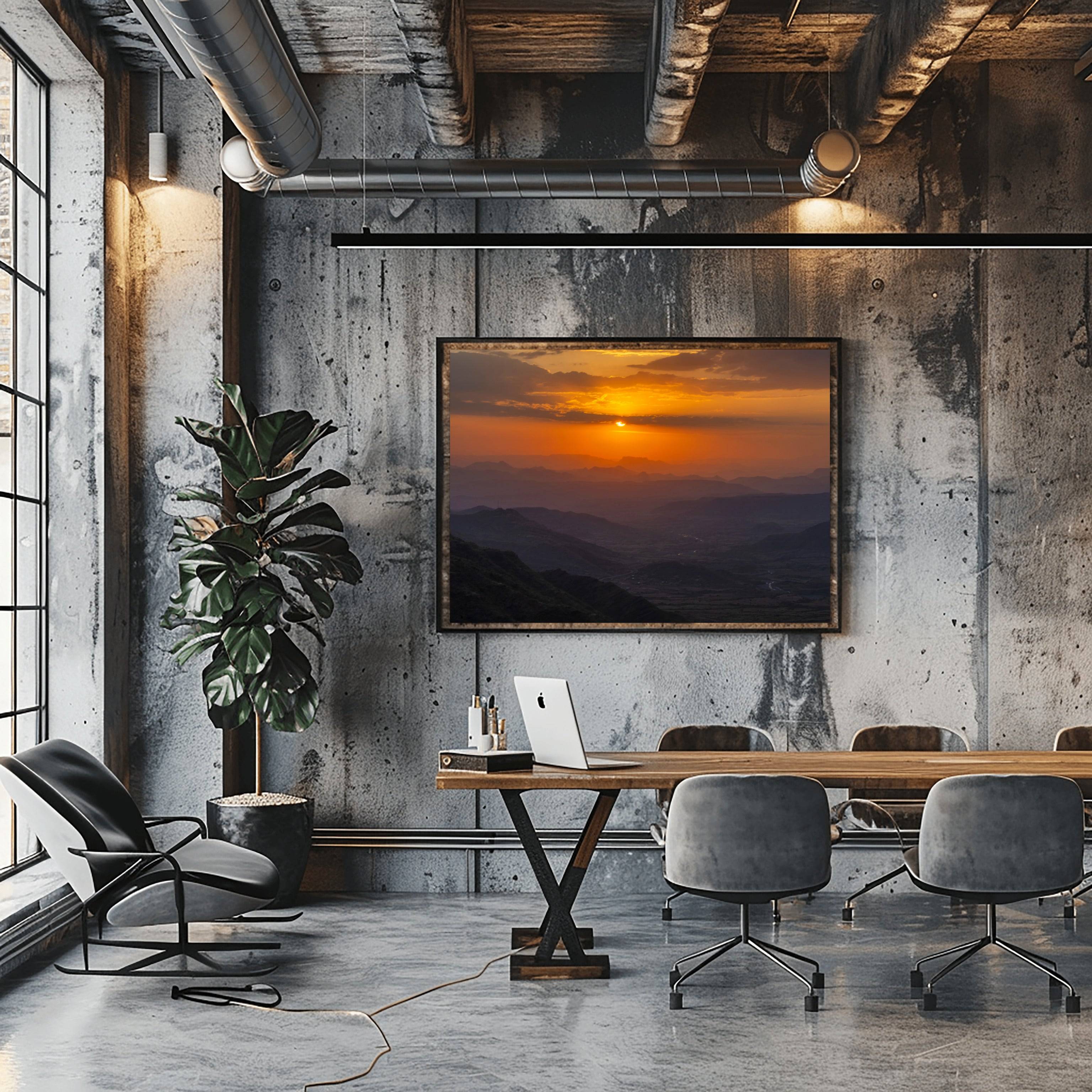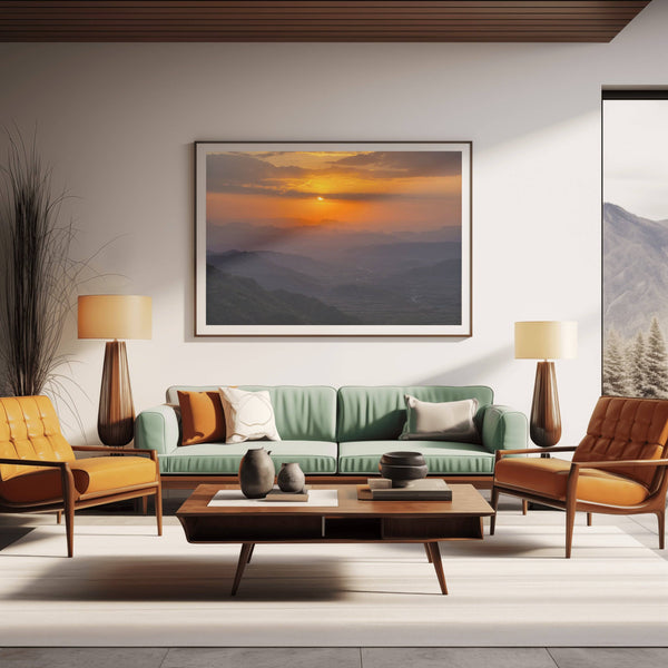 This photograph captures the layered depth of the mountain range as the sun dips below the horizon. It is a warm, earthy piece of art that brings a sense of ancient mystery and natural grandeur to a room, perfect for a cozy den or a global-inspired gallery wall.
