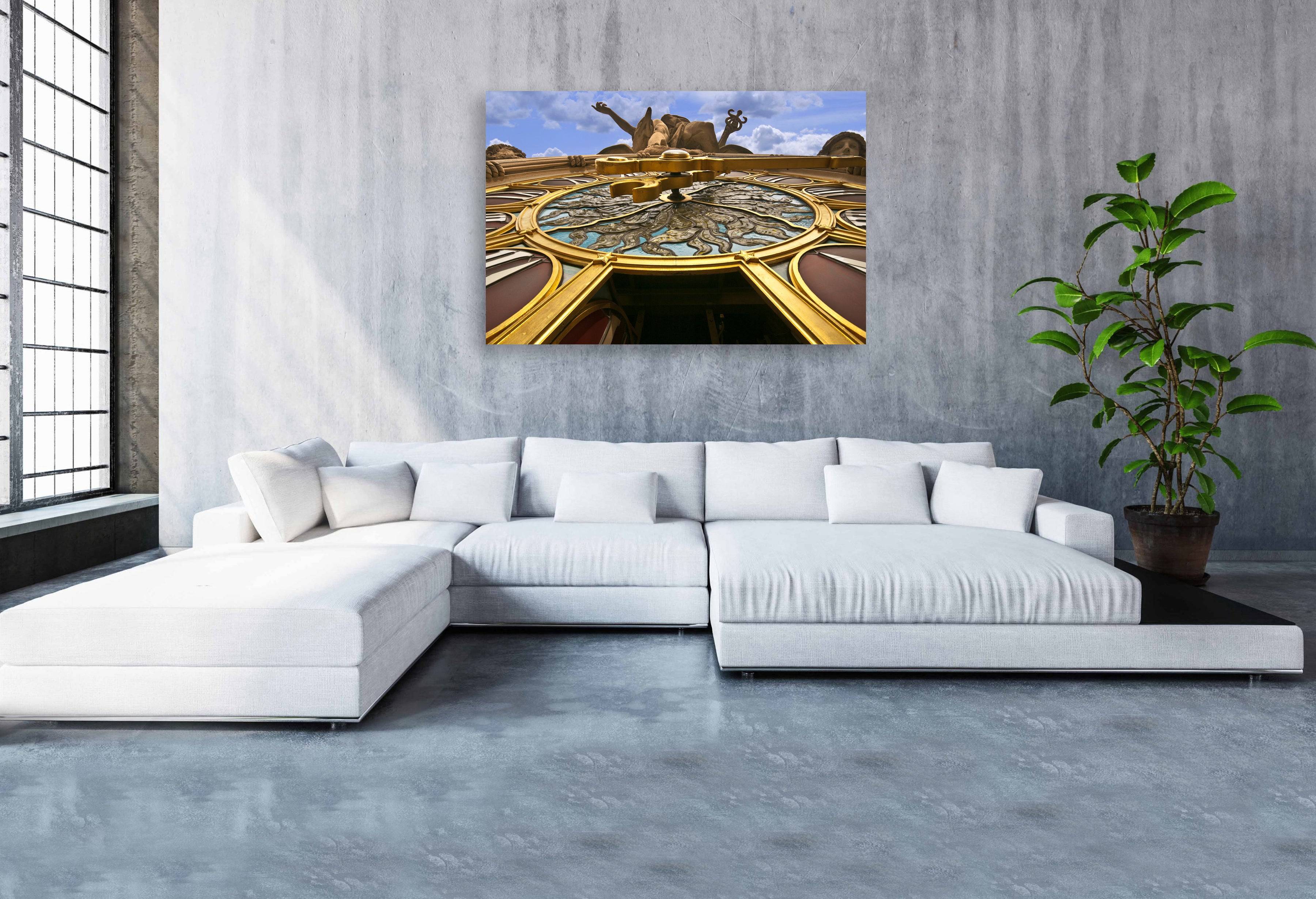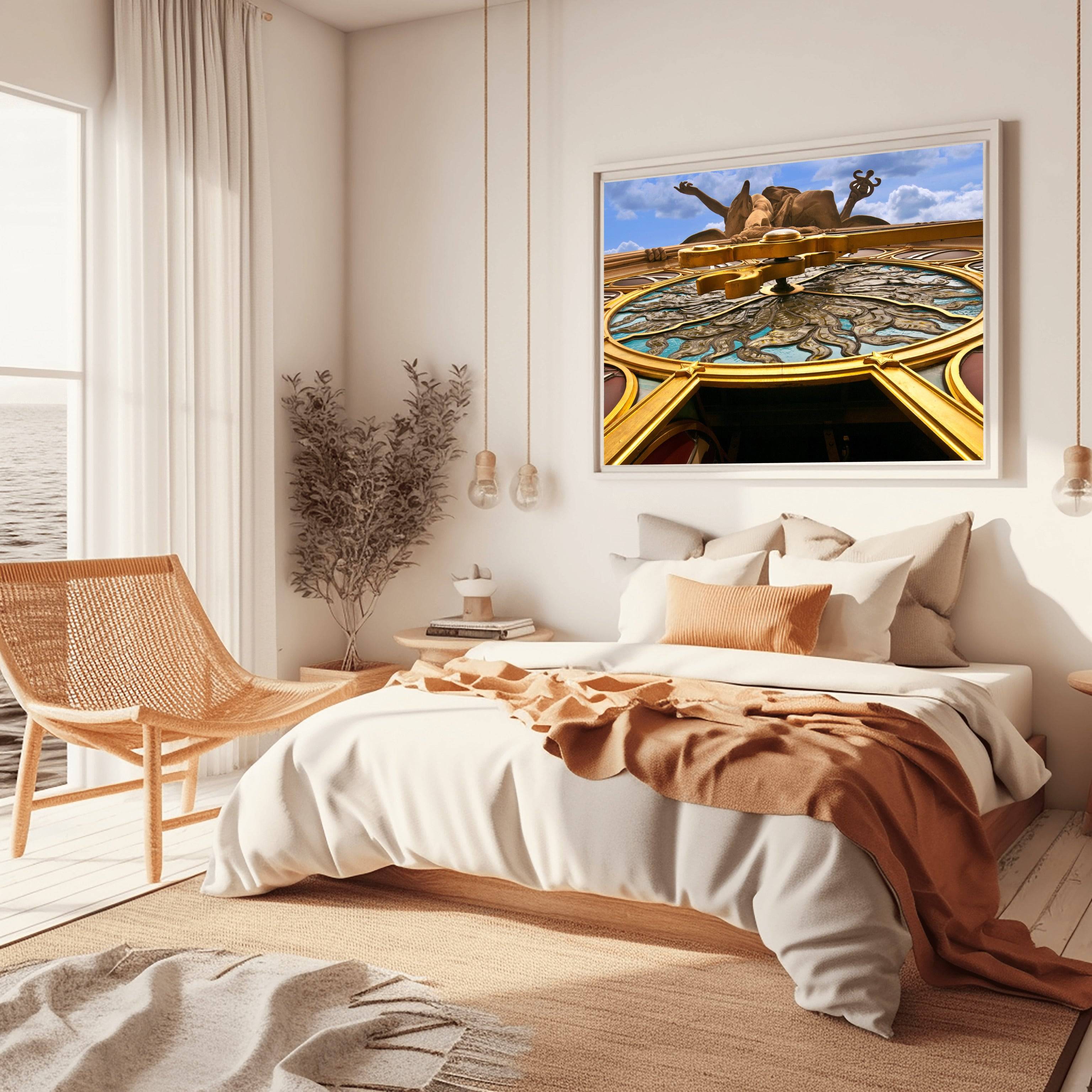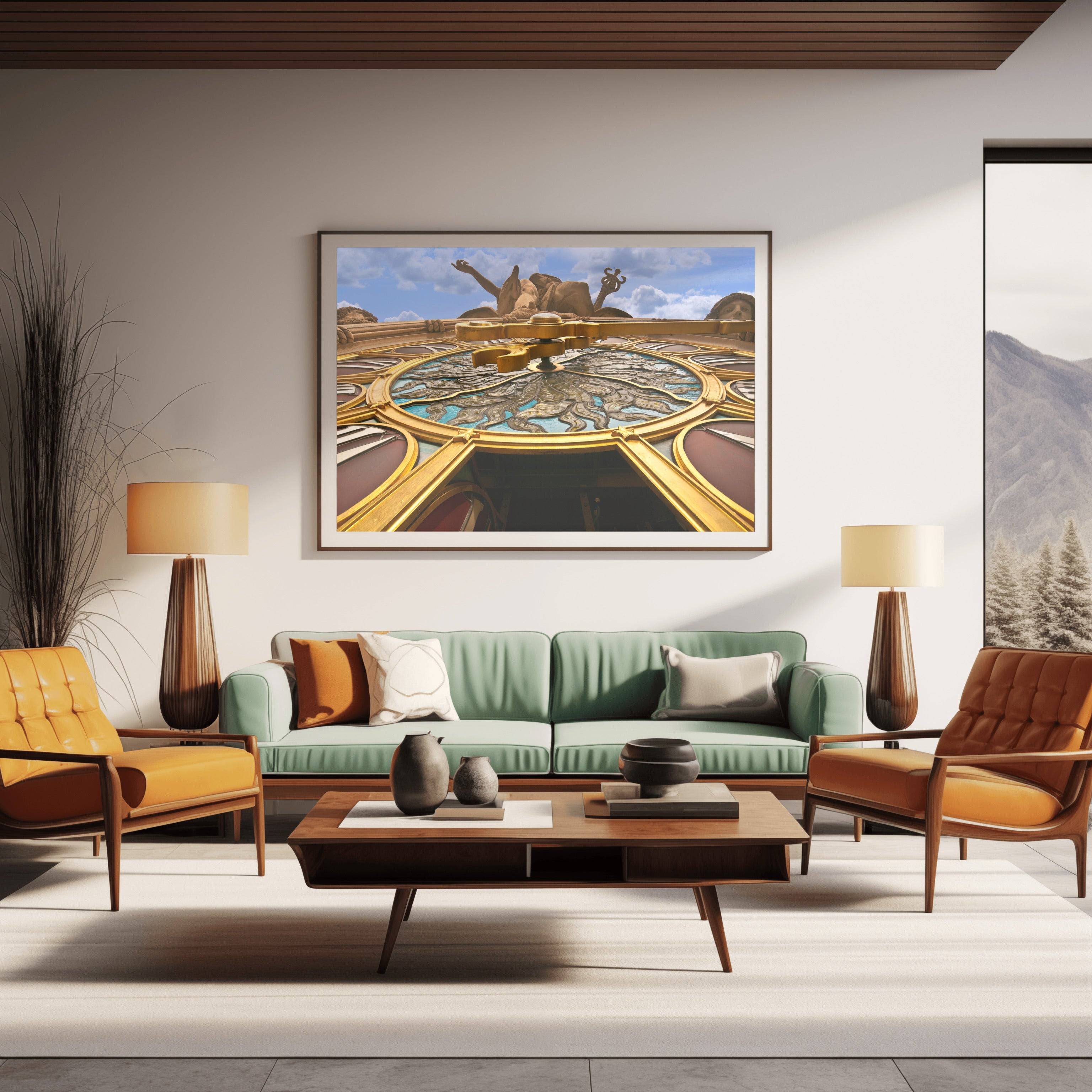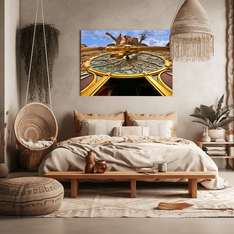 Richard Silver’s lens captures the intricate textures of the limestone and the subtle colors of the clock face, which measures 13 feet in diameter. The image highlights the incredible craftsmanship of the Beaux-Arts era, bringing the viewer eye-to-eye with the gods that watch over 42nd Street. This print is a sophisticated choice for lovers of history and classical architecture, offering a detailed look at one of New York's most famous and massive outdoor sculptures.