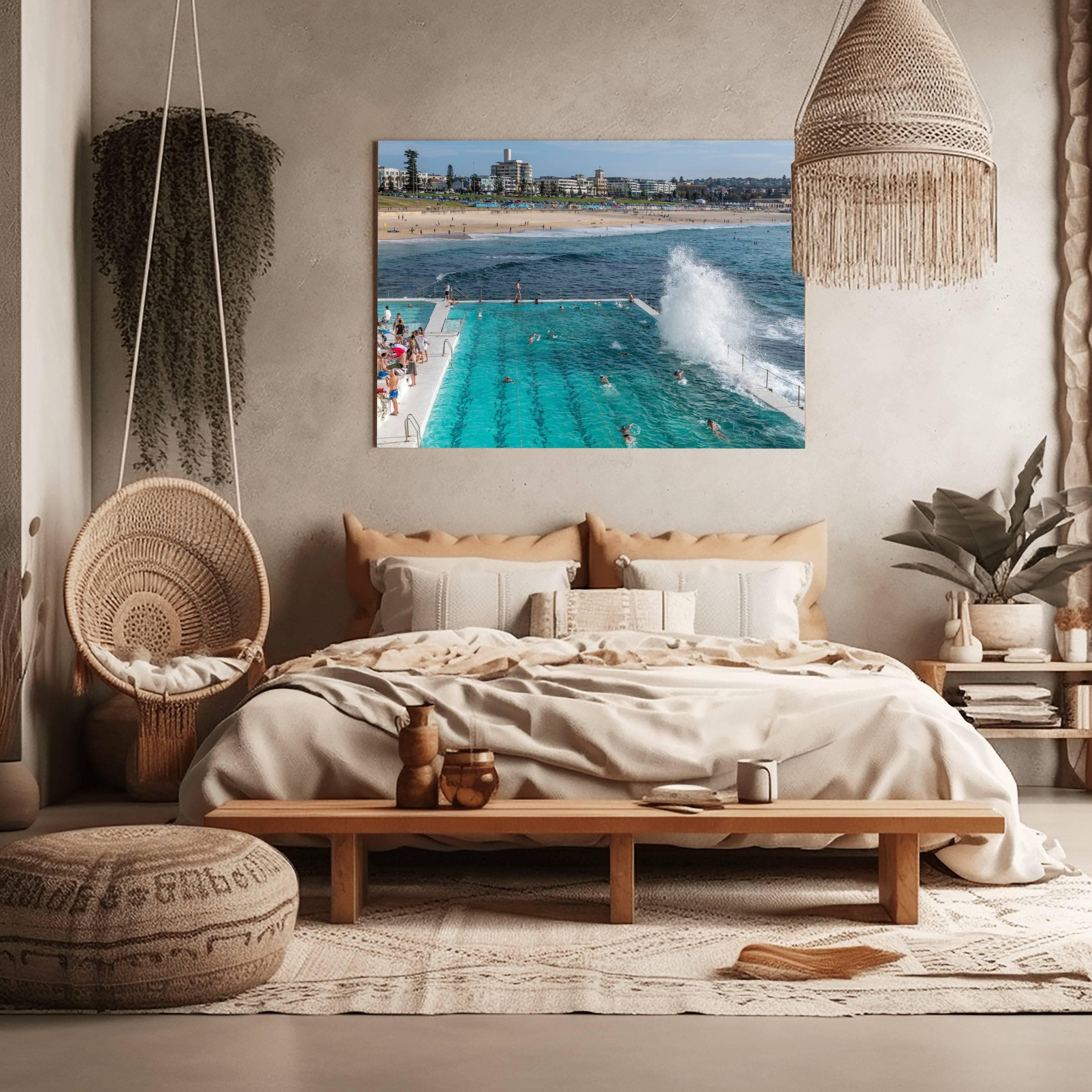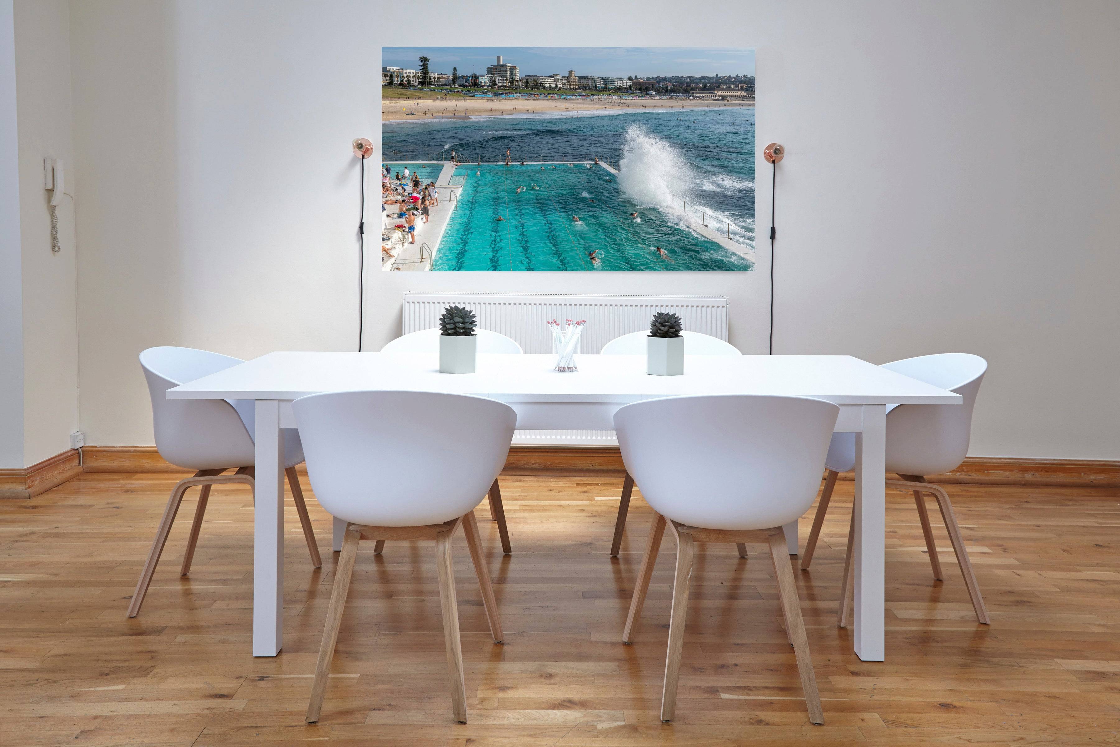 Silver’s timing preserves the energy of the crashing water while maintaining the serene, minimalist aesthetic of the club’s famous pool. The high-contrast palette of crisp white and deep ocean blue creates a refreshing, modern look that perfectly captures the spirit of the Australian coast. This print is a powerful addition to any home, offering a sense of movement and coastal vitality that is both invigorating and sophisticated.