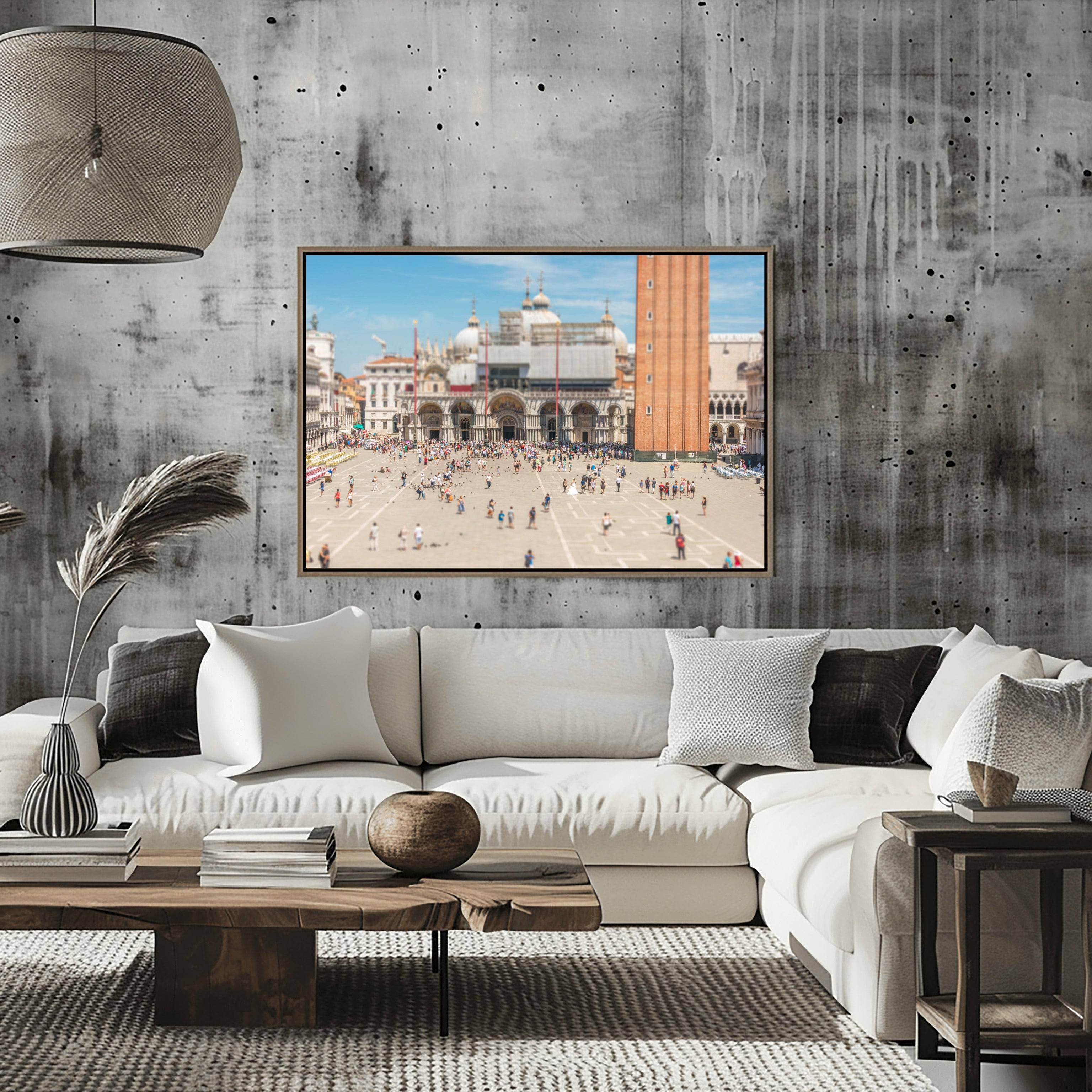 This piece captures the romantic essence of Venice with a unique, modern twist. The perspective invites the viewer to step back and observe the city’s timeless beauty as if looking at a meticulously crafted diorama. It is perfect for adding a touch of European charm and artistic curiosity to a living room or entry gallery.