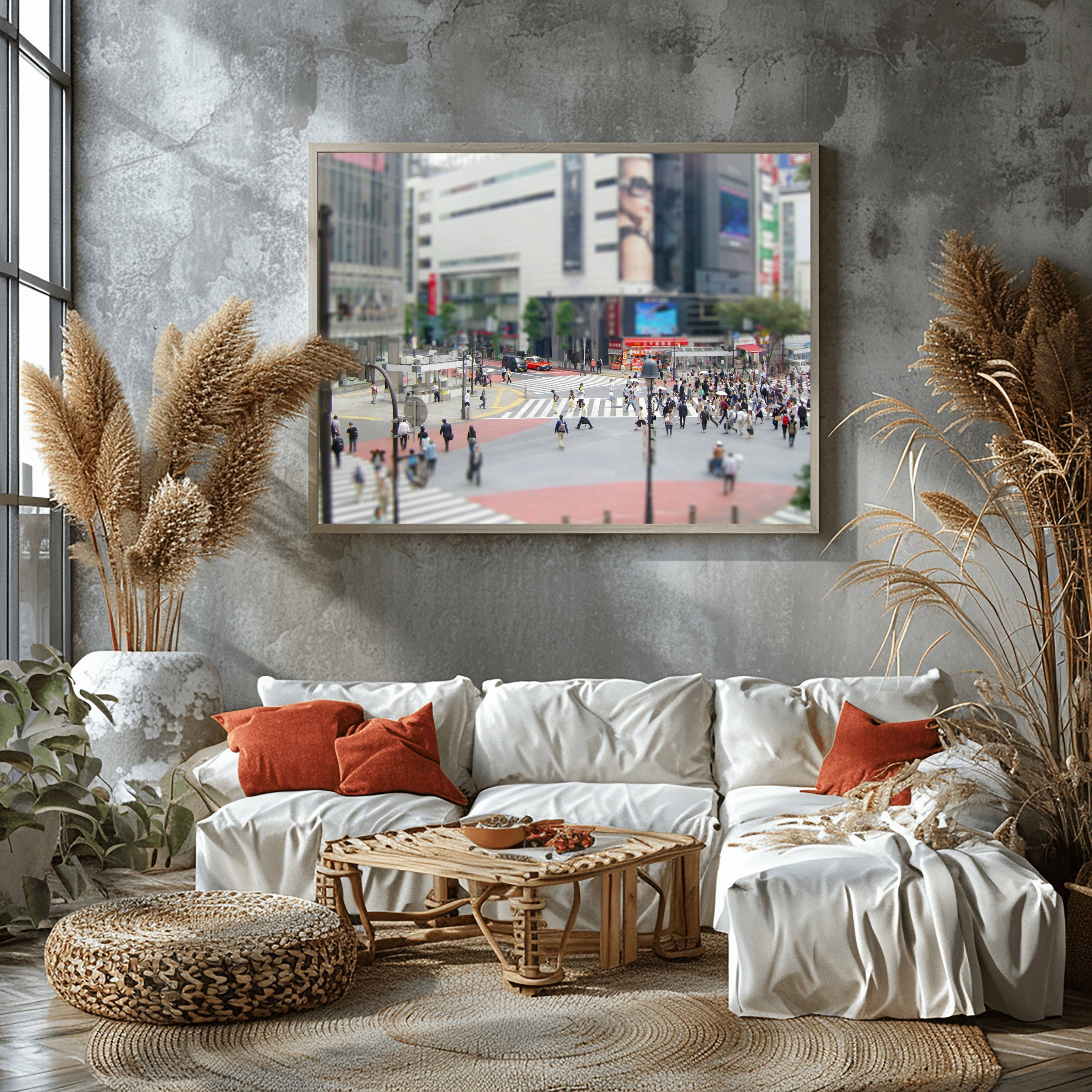 This print serves as a vibrant focal point, capturing the high-energy pulse of Japan in a way that feels intimate and manageable. The selective focus draws the eye to the tiny "figures" navigating the pavement, making it a perfect conversation piece for a modern office or a tech-forward living space. It bridges the gap between urban documentary and surrealist art.