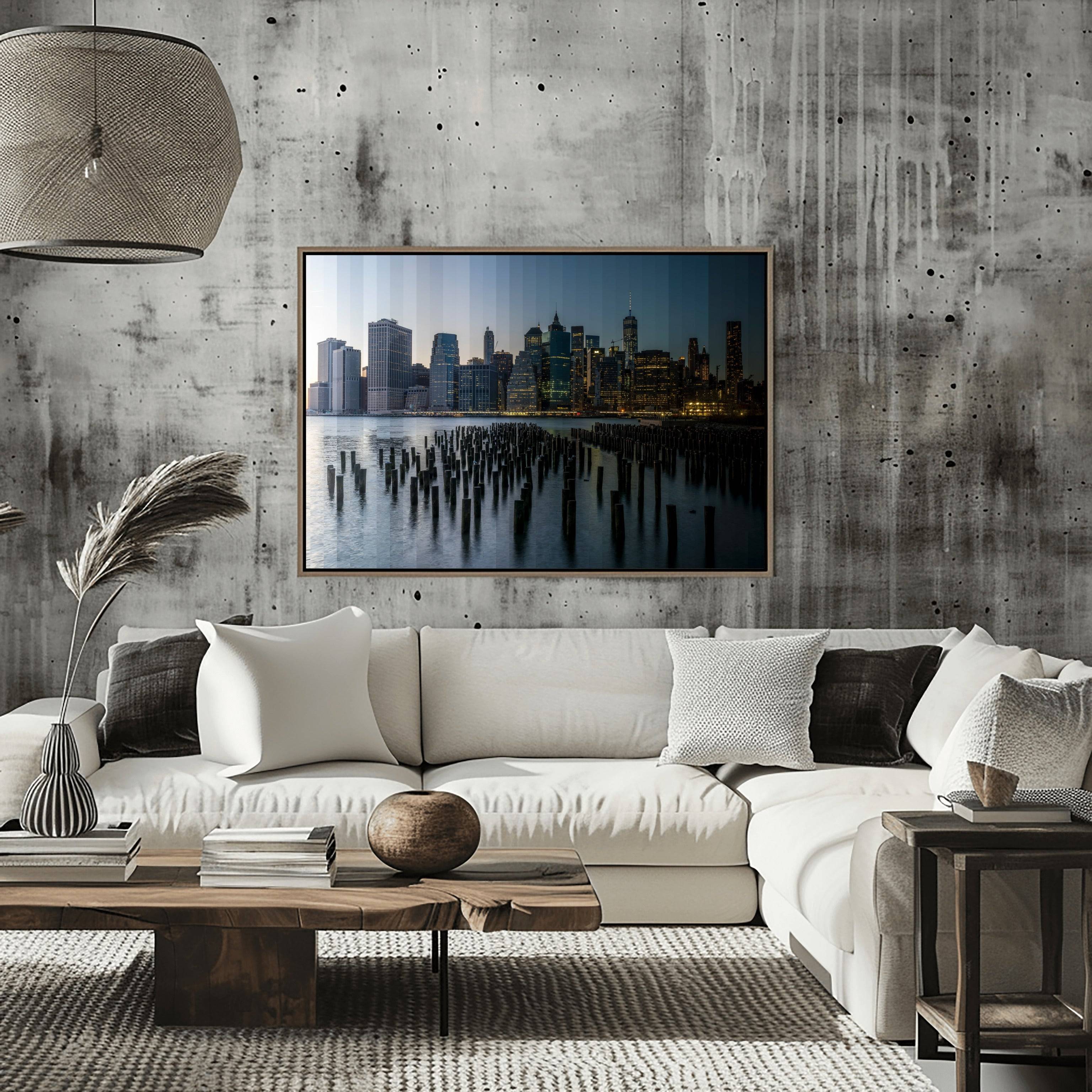 Richard Silver’s technique reveals the subtle shifts in light as the sun disappears behind the buildings, causing the glass towers of the Financial District to transition from reflective mirrors to illuminated lanterns. By capturing several hours in a single frame, the photograph emphasizes the resilient spirit and constant movement of the city. This print is a powerful statement piece for any home or office, offering a sophisticated and highly technical tribute to the skyline of the world's most famous metropolis.