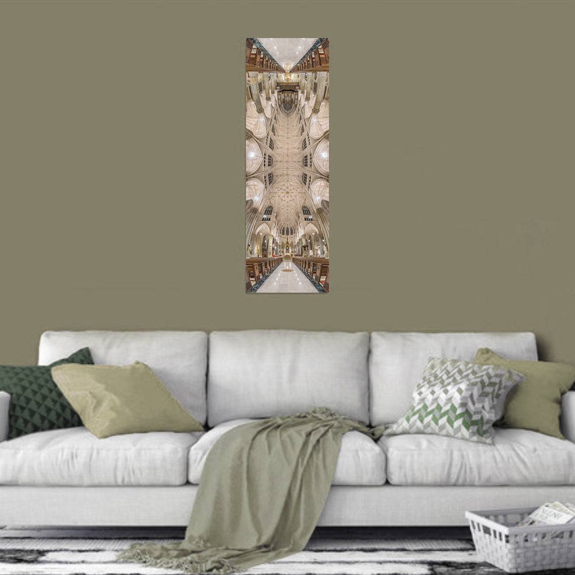 This print brings a sense of soaring tranquility to any space. The crisp white stonework and the warm glow of the stained glass create a sophisticated, meditative atmosphere. It is a signature piece for New York enthusiasts and collectors of architectural photography.