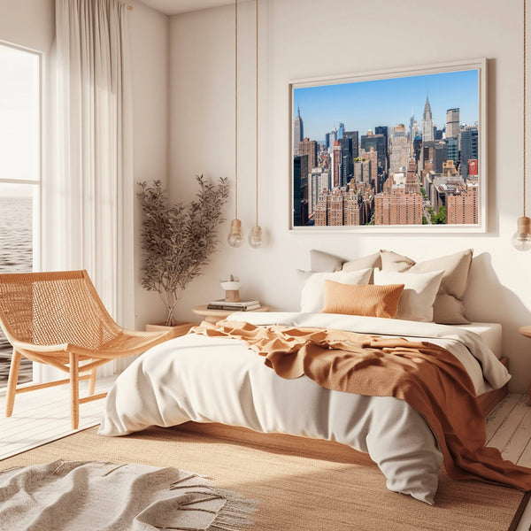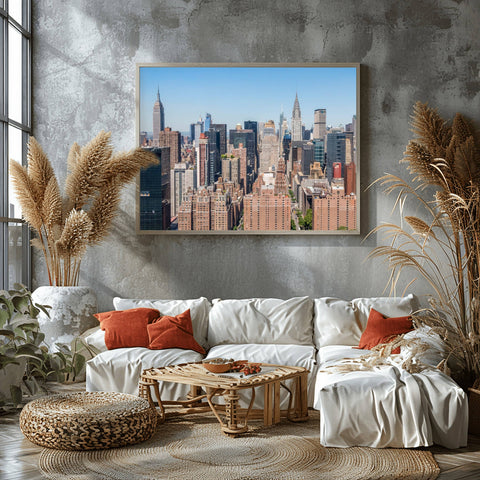 Silver’s aerial shot captures the varying textures and details of the two spires, from the limestone of the Empire State to the gleaming stainless steel of the Chrysler. The image highlights the density and drama of Midtown, offering a classic yet elevated view of New York's heritage. This print is a quintessential choice for any New York enthusiast, bringing the city's most iconic silhouettes into your home.