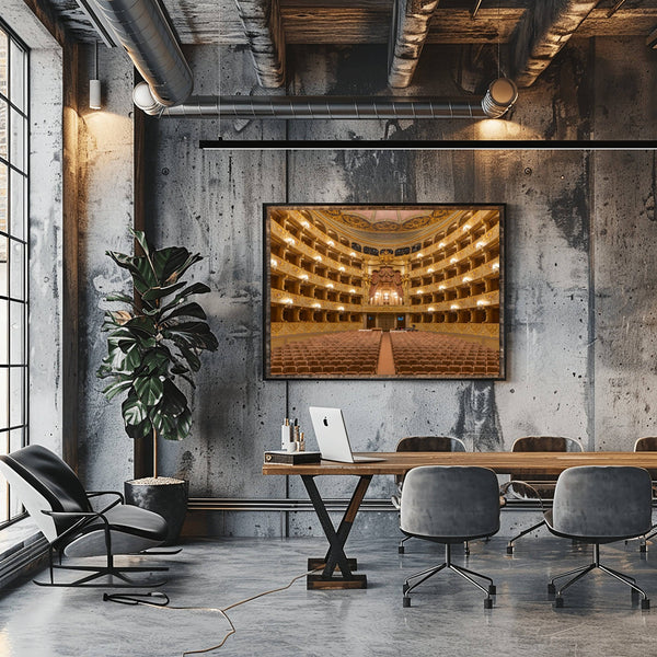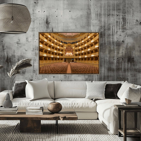 Richard Silver’s symmetrical perspective captures the grand tiers and the imperial atmosphere of this national monument. This print is a sophisticated choice for those who appreciate the intersection of classical music and 18th-century architecture, bringing a sense of European grandeur to a formal living or dining room.