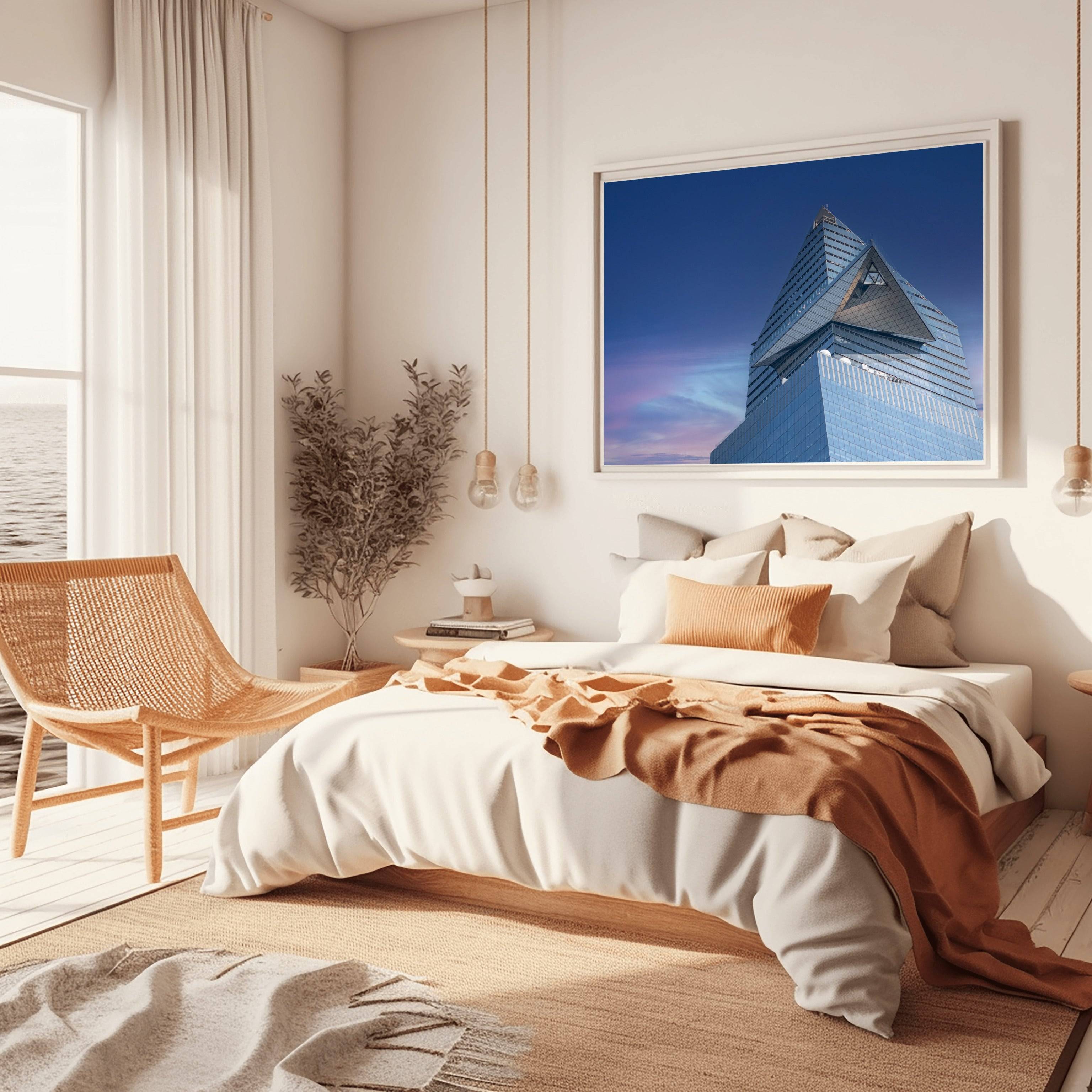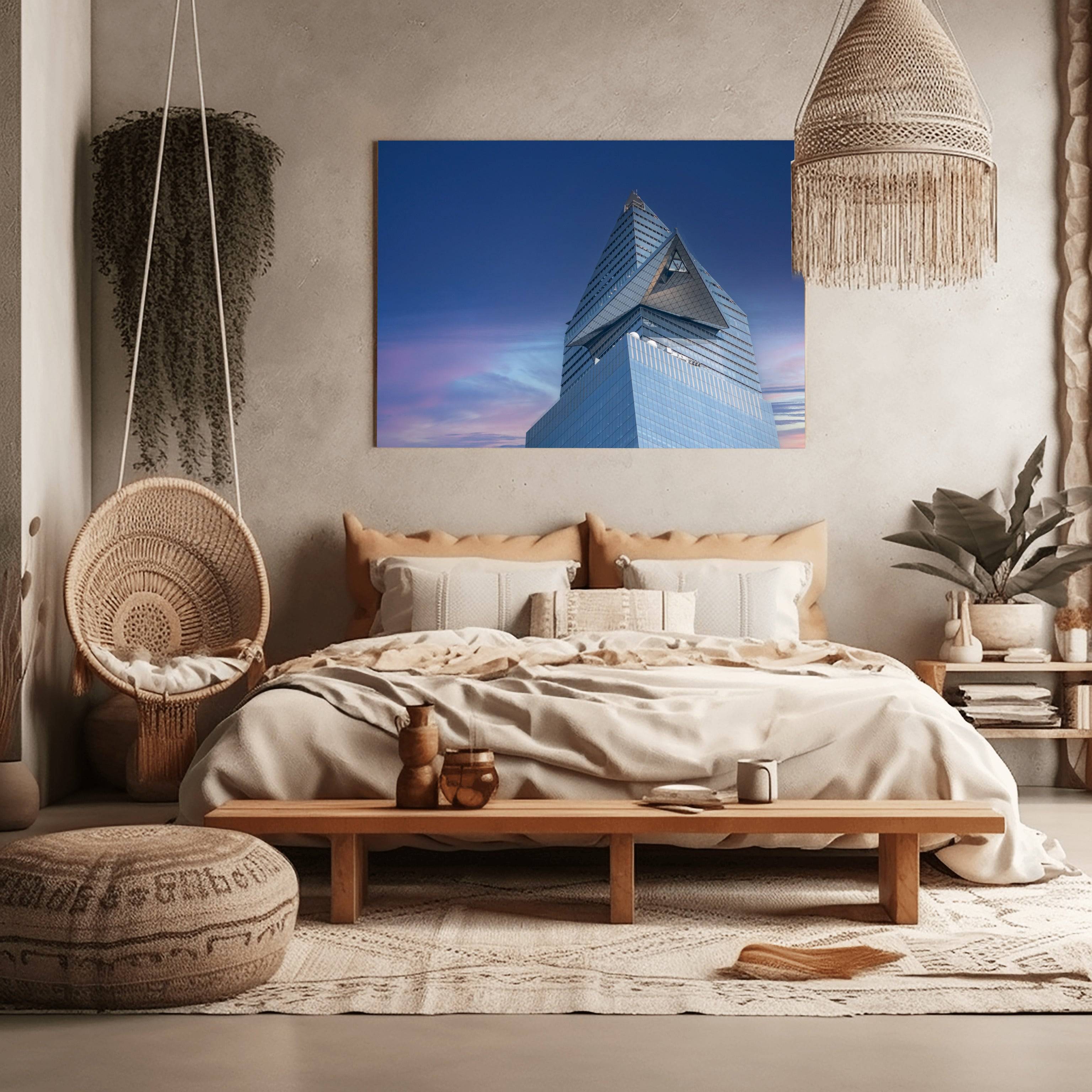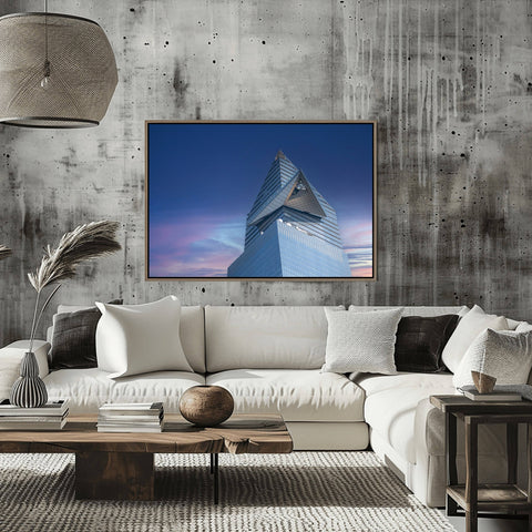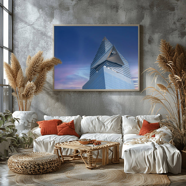 Richard Silver’s composition emphasizes the contrast between the cold, precise steel of modern architecture and the organic, hazy glow of the city at dusk. It is an image that speaks to the ambition of New York—a city that continues to push outward and upward. This print is a perfect statement piece for a modern office or a high-rise apartment, bringing the breathtaking scale of the "new" New York into your space.